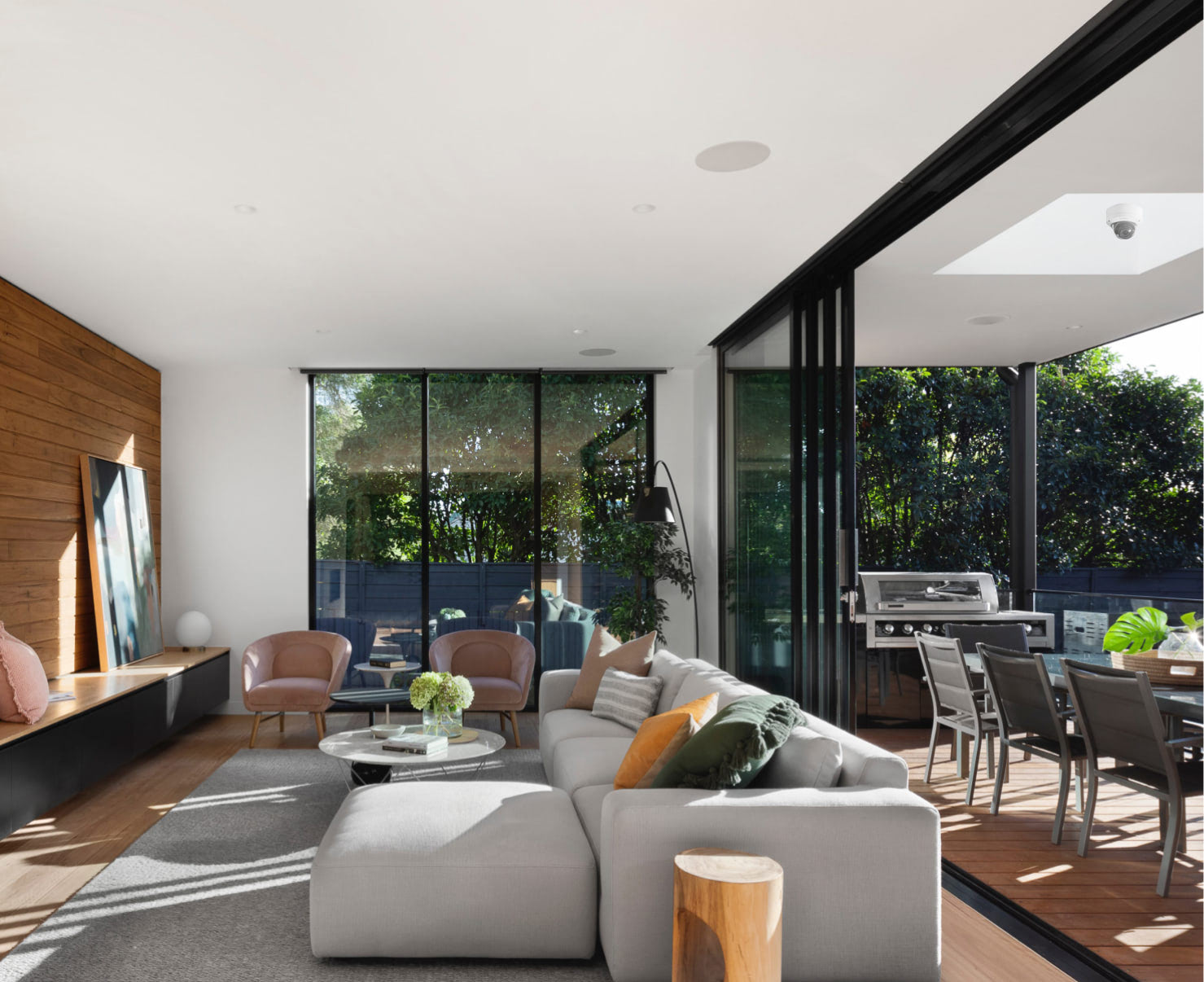 Luxury homeowners love their outdoor spaces and are willing to invest in making these gathering spots the best they can be with technology. According to a recent study conduct by home entertainment industry publication CE Pro, the media project price point for outdoor entertainment was $11,668 in 2023. That’s likely due to more compelling solutions in security, lighting, audio, video, and outdoor shades than ever before—options that are easier to integrate than ever for less-invasive installations. Here are some important things to consider when planning a landscape where technology plays a role.