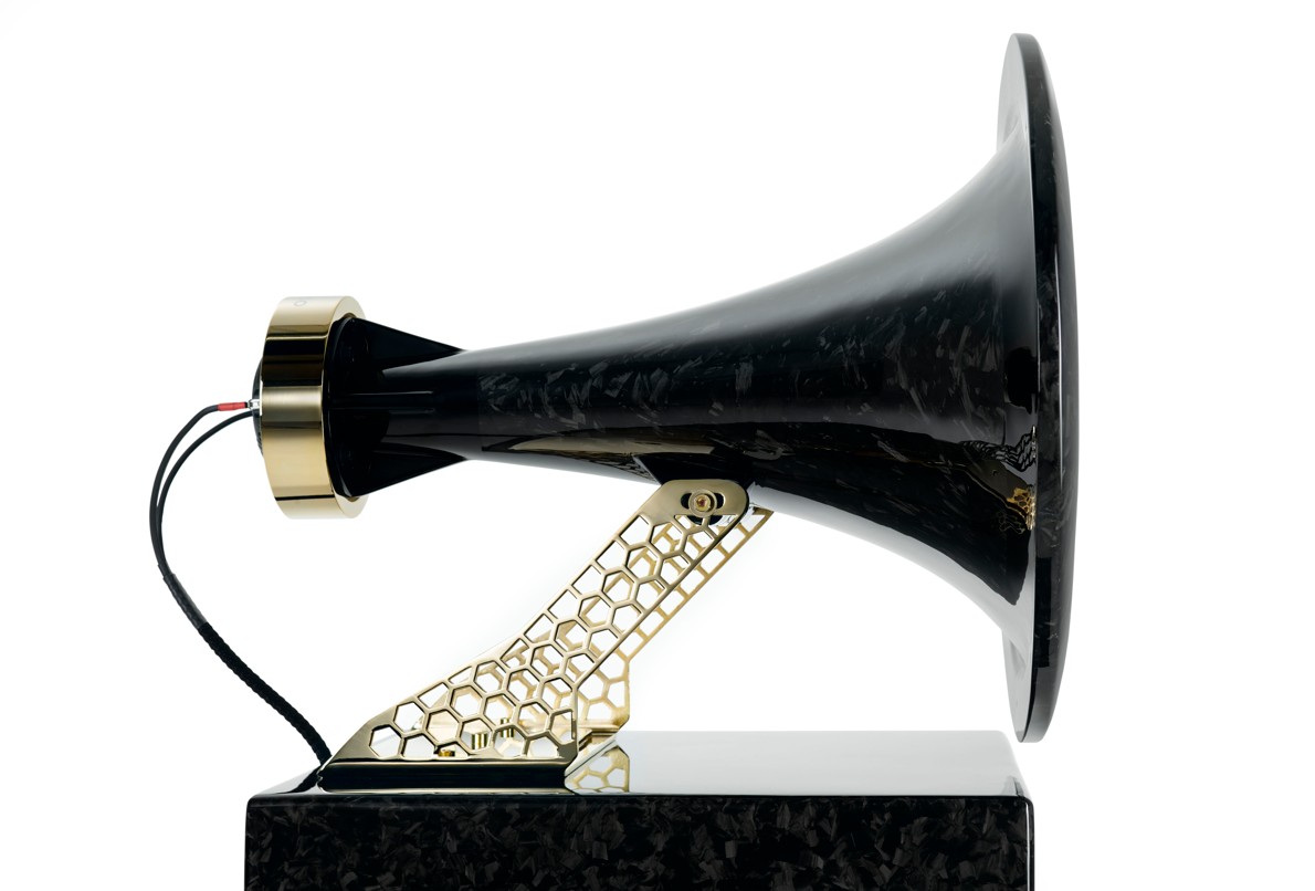 Experience THE BLACK SWAN: a musical speaker system created to transcend expectations and dissolve the barrier between performance and reality. Precision engineering converges with artisan craft to deliver breathtaking authenticity—at home in a reference home theater, irresistible in a purist music system. Now revealed in a seductive Full Cast Carbon finish, the cabinet shimmers with that unmistakable, gem-like structure only cast carbon achieves. The horn is secured by a massive brass mounting bracket plated in 24-carat gold, a quiet flash of luxury that frames the driver like fine jewelry. Over the sculptural body, a 13-layer high-gloss piano lacquer is applied and hand-polished to a mirror sheen. This is not only a transducer; it is an object of desire—meant to be seen as intensely as it is heard.