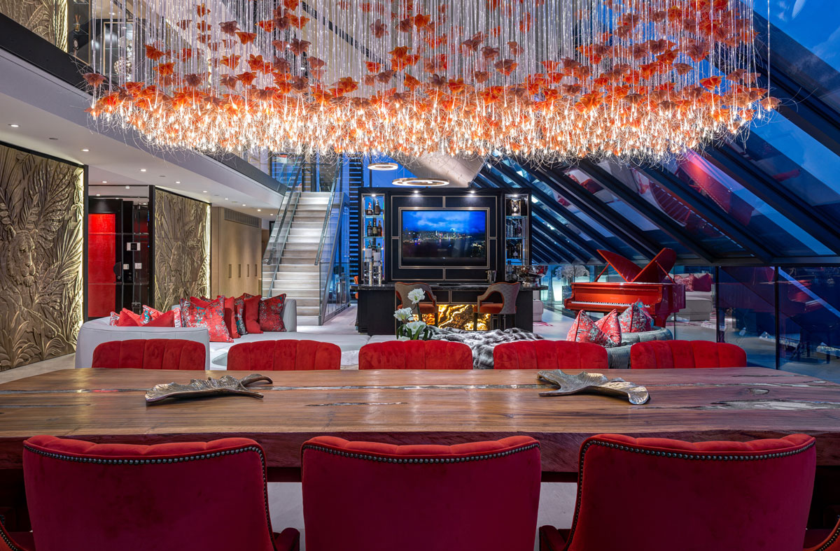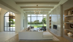 Integrated LED lighting connects to centralized control systems that allow automated scenes, schedules, occupancy sensing, daylight harvesting, and coordination with motorized shades, security, and audio-video systems.