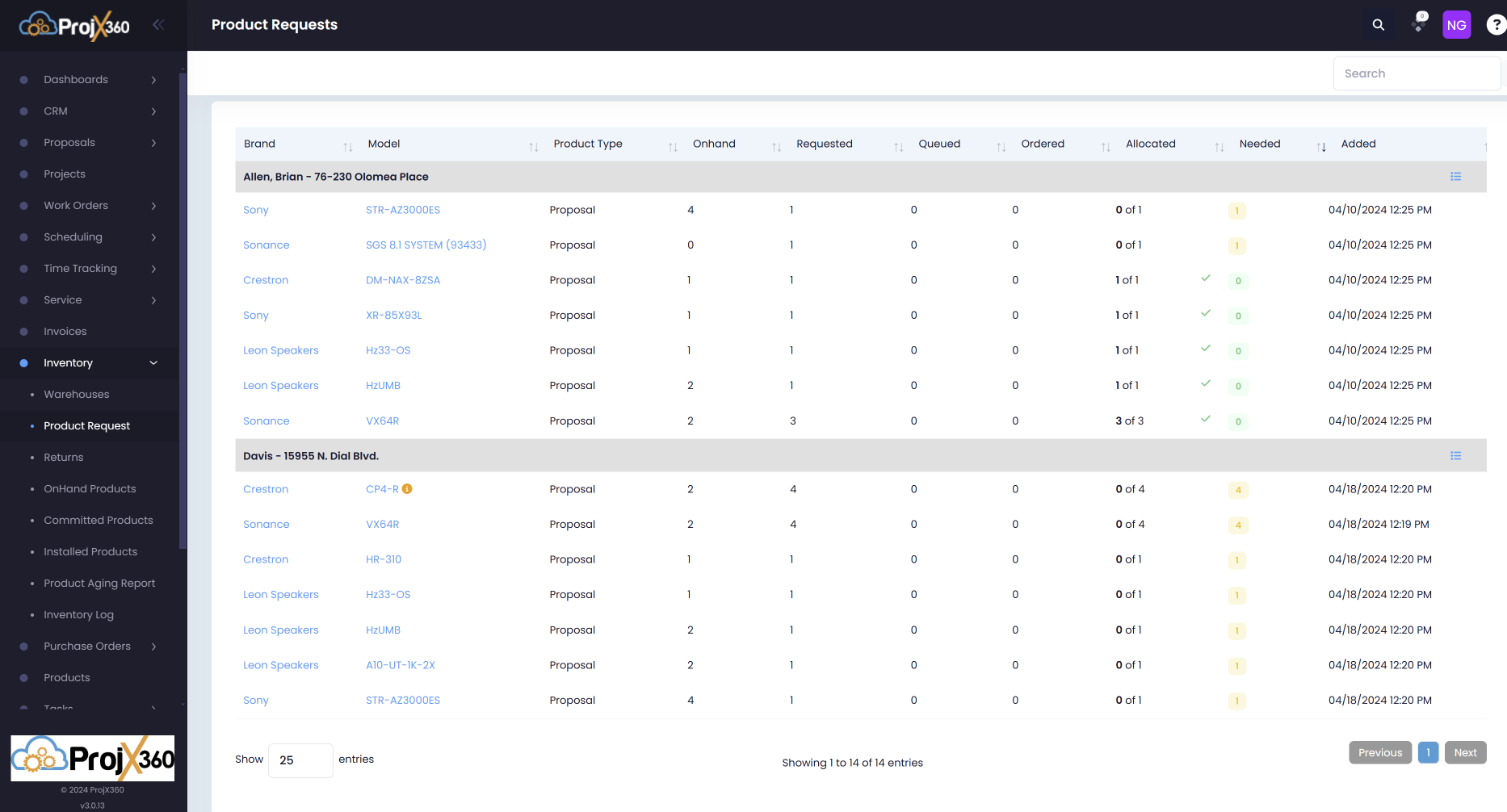 For example, using the ProjX360 platform, if a salesperson is pushing a Proposal into a Project, the PM team is alerted, letting them know it’s their turn. The PM team will push Projects into Product Requests to tell Inventory it’s their turn. Then Scheduling will hand that off to the field. “Our software is designed for the AV workflow so you aren’t trying to fit a square peg into a round hole,” adds Greenwald.